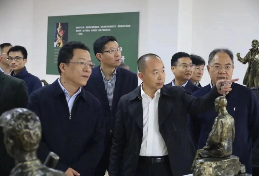 2020年11月21日上午,市委書記丁純等市領(lǐng)導到高新區(qū)銅官府文化創(chuàng)意股份公司新基地調(diào)研,這是繼今年4月26日之后,丁書記第二次調(diào)研銅官府。丁書記一行參觀了銅官府大師工作室和展廳,同時參觀了金星銅、大明銅匠生產(chǎn)基地。特別對正在裝飾的5000平方米徽式銅建筑提出期望。市委副書記趙振華,市委常委、常務(wù)副市長程雙林,市委常委、經(jīng)開區(qū)黨工委書記黃化峰,市委常委、樅陽縣委書記劉亞東等領(lǐng)導也一同參加了調(diào)研。